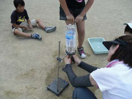 理科の時間にペットボトルロケットを打ち上げました。空気の力って凄いですね。
