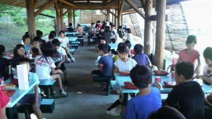 朝食の時間になりました。子どもたちは元気に過ごしています。