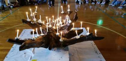 雨が降ってきそうなので,プレイホールでキャンドルファイヤーをしました。