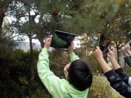松の木にまつぼっくりがなっていることや,新林の森に赤い実がなっていることなどをみつけ,写真で記録しました。