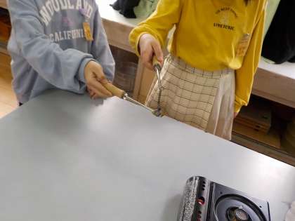 実験用ガスコンロを使って金属の球を熱すると体積は変わるのか…