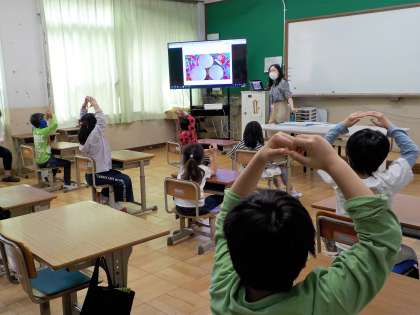 正しいお箸の使い方を学習しました。自分のお箸で豆,輪ゴム,スポンジを指定された場所に入れる練習をしました。