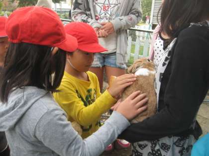 11月7日・8日・9日の中間休みに,飼育委員会のうさぎとのふれあいタイムがありました。1年生,嬉しそうにさわり「ふわふわや。」「あったかい。」と話していました。