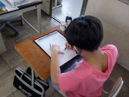 筆の太さや墨の濃淡に注目しながら,昔の人たちが描いていた様子を想像しながら描きました。