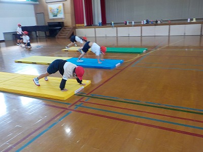 友達と協力してマットを出したり,マットがズレたらちゃんと直して次の人に声をかけたり,ルールを守って活動をすることができました。