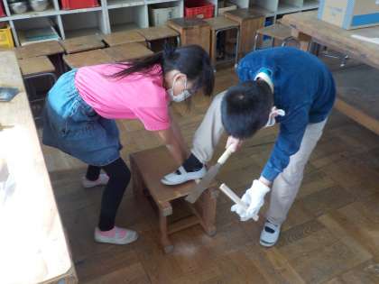 のこぎりでギコギコ木材を切って、金づちでトントン釘を打って、自分の作りたいものを組み立てていきます。どんな作品が出来上がるのか楽しみです。