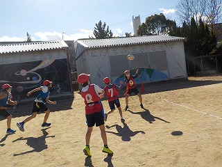 体育科の学習で「タグラグビー」を行っています。前に投げてはダメなこと、ボールを持ったらすぐに動き出すことに最初は苦戦している様子も見られましたが、徐々にルールにも慣れ、楽しんで学習しています。みんなで声を掛け合って頑張っている姿が最高です。