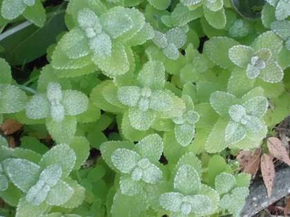 1月6日 おはようございます。昨日の雪はとけましたが,今日は小寒です。ミントの葉にも霜がついていました。