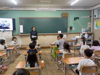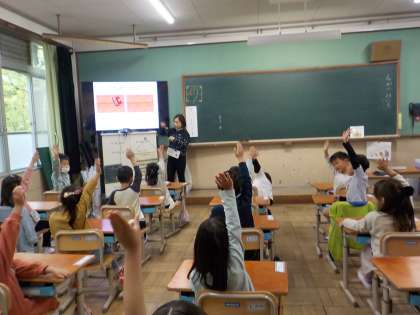 栄養教諭の岡本先生に、給食のことについて教えてもらいました。