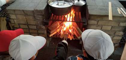 かまど係、材料係など自分の役割をしかっりと果たしています。