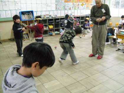 かんぽっくり,あやとり,ヨーヨー,こまを教えてもらっています。