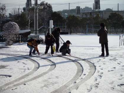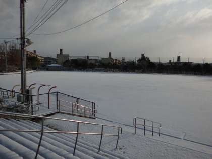 2月18日 おはようございます。今朝は20センチほどの雪がつもり,あたり一面が雪景色になりました。学校の運動場も雪が積もっています。土曜英語学習に来た子どもたちも雪にびっくりしていました。