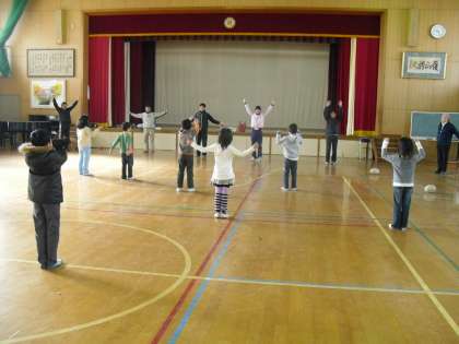 今日は今年度最後のおやじの会です。寒いためか参加者が少なく残念ですが,体育館でゲームが始まりました。この後焼き芋をする予定です。