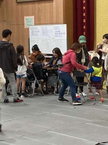 新林小PTAは輪投げビンゴコーナーを開催していただきました。体育館には子どもたちのたのしく、にぎやかな声が響いていました。