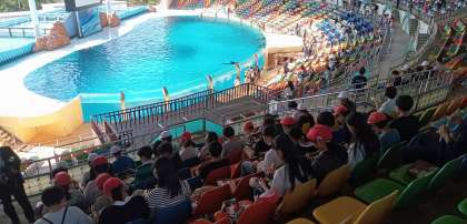昼食の様子です。イルカを見ながらお弁当を食べました。