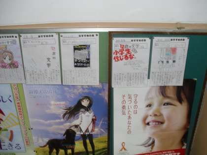 卒業に向けて掲示物が変わりました。また6年生から在校生への本の紹介もあります。6年生を送る会に来られた時にでも,見てください。本館1階です。