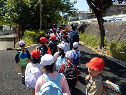 行き帰りは、「しりとり」や「△△と言ったら○○」と1年生と楽しんでいました。