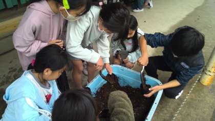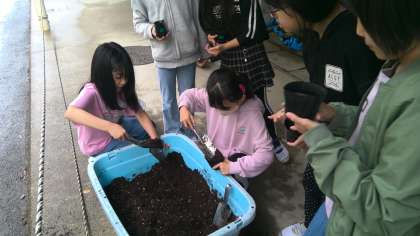 理科「植物の育ち方」の学習で、ヘチマ・ヒョウタン・ツルレイシの種を植えました。