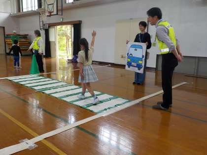 体育館に設置していただいた横断歩道を使いながら道路の歩き方や道の