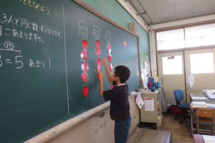 算数科の「あまりのわり算」の学習をしています。