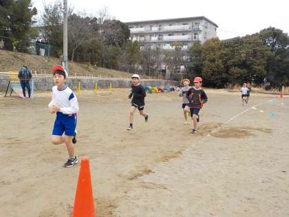 体育科「持久走」では、長距離を自分のペースで走る学習をしています。西山マラソン当日はお家の方々の声援もあり、のびのびと自分のペースで走り切ることができていました!走り終わった後の達成感に溢れた表情はとても輝いていました。