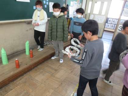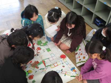 3年生は、新林のまちの魅力について1年間学習してきました。学習してきたことを2年生に発表しました。楽しんでもらうために、ゲームや活動を織り交ぜて、特産品である柿や筍について伝えました。「2年生が楽しんでくれたので、頑張った甲斐があった。」「成功するか不安だったけど、グループのみんなで協力してできたので、達成感があった。」などの意見が出ました。2年生も3年生もとっても良い顔をしていました。参観にきていただいた保護者の皆様、ありがとうございました。