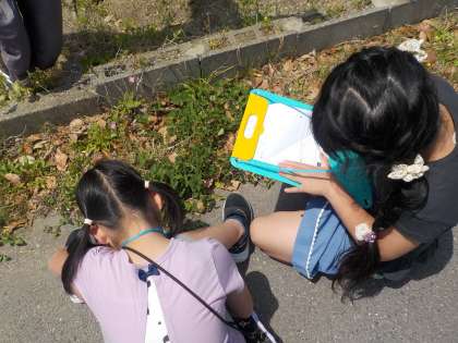 理科では花や生き物を見つけ、虫メガネで観察をしました。葉っぱや生き物が大きく見え、驚きでいっぱいでした。みんなで楽しみながら学習することができました。