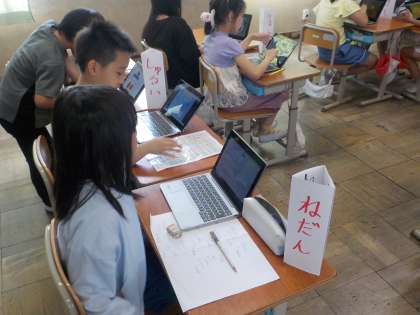 総合的な学習の時間では、新林学区の特産「大枝の柿」について調べています。普通の柿と何が違うのか、パソコンを使って学習をしています。その中で出た『なんで?』をさらに深めていっています。