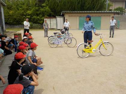西京警察署の警察官と地域の方々にきていただき、交通安全教室を行いました。