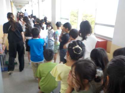 先日、避難訓練をしました。何度も訓練をしているので、子どもたちも慣れた様子で訓練することができました。どんな時も速やかに避難できるように、学校全体で取組みたいと思います。