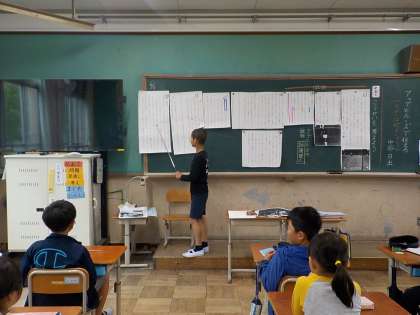 国語科では4年生になってから初めての説明文の学習進めています。説明文の「はじめ・中・終わり」にはどのようなことが書かれているのかなどの文章の構成について話し合いをしました。