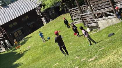 フライングディスクゴルフの様子です。現在入浴を済ませ、17:30からは夕食です。しっかり食べて夜のキャンプファイヤーに向けて備えていきます。みんな体調を壊すことなく元気に過ごしているようです。