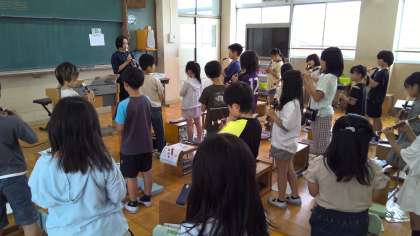 リコーダーの学習が始まりました!初めて吹くリコーダーに戸惑いながらも、みんな意欲的に学習に取り組むことができました。