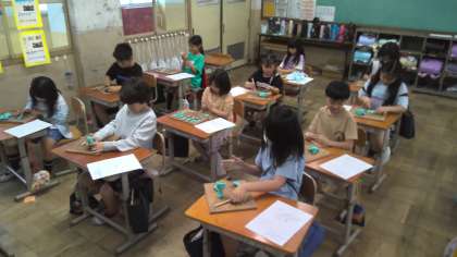 ねん土を使って、「あったらいいな、こんな町」をテーマに思い思いの建物を作りました。みんなの建物を集めると、どんな町ができるかな?