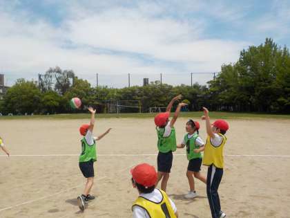 梅雨晴れとなり、運動場で体育ができるようになったので、本日から新しく「エンドボール」をしました。一年生の時にやったパスゲームに似た運動で、子どもたちも思い出しながら活動しました。また、パスゲームの作戦を思い返しながら作戦を立てる姿も見られました!