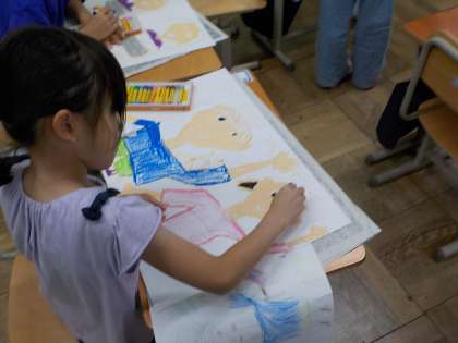 学校で楽しかったこと、嬉しかったことなどを、先生や友達に伝える絵をかきました。