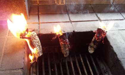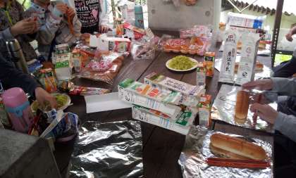 朝食はパックドックを作れました。牛乳パックを使って上手に焼けました。