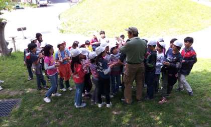 午後の活動は自然観察と冒険の森に別れて活動しまさた。自然観察では山の家の先生に自然についていろいろ教えていただきました。