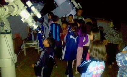 天体観察をはじめる前は空一面が雲だったのに観察の時は雲もなく多くの雲を見ることができました。土星の輪もはっきり見えて子どもたちも大喜びでした。