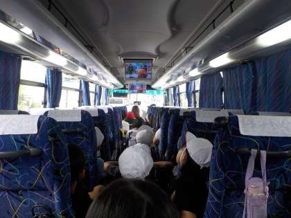 初めてバスに乗って社会見学に行くことにワクワクしていました。