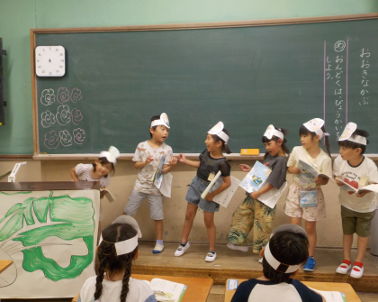 グループに分かれて、役を決めたり、音読の仕方を考えたりしていました。