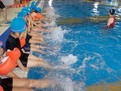 2学期最初の水泳学習を行いました。久しぶりの水泳学習でしたが、みんなしっかりとコーチの話を聞き学習に向かうことができました。