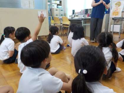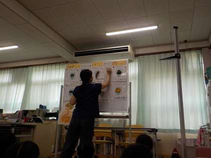 身体計測で保健室に行ったときに養護教諭から「げんきなうんち」について話を聞きました。「便の種類によって体調の変化が目でわかるので、水分が足りてないな。野菜が少ないのかな?と自分で気づけるといいね。」と教えていただきました。