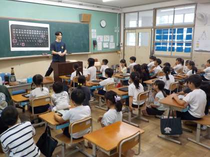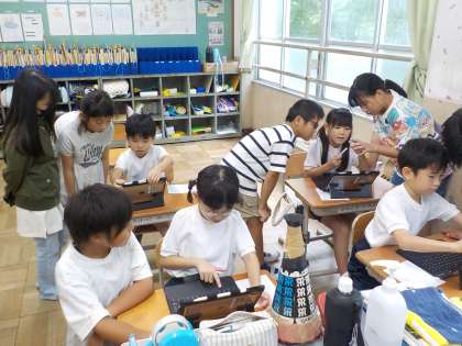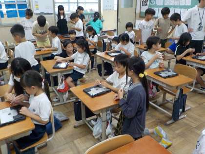 9月5日(金)にGIGA担当の先生と5年生がiPadの設定の説明とお手伝いに来てくれました。新しいiPadにみんなニコニコ顔で設定をしていました。5年生もやさしく丁寧に教えてくれて、無事に設定が完了しました。