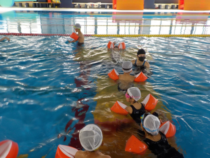 久しぶりの授業でしたが、水に慣れて楽しく活動する姿が見られました。