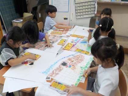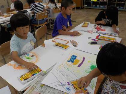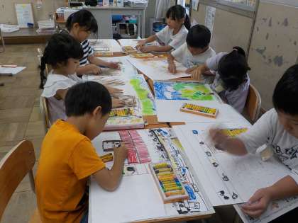 絵本の絵を見ないでお話だけを聞いて場面を想像しました。