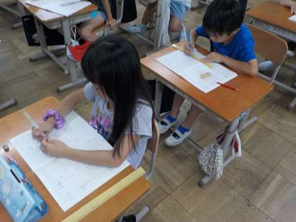 算数の学習「たし算とひき算のひっ算(2)」では、毎日たくさんの計算問題をがんばっています。いろいろなひっ算のしかたを覚えて、難しい問題もだんだんできるようになってきました。