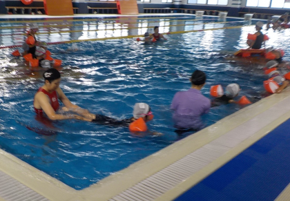 はじめは、顔をつけるのが怖かった子どもも体の力を抜いて浮くことができるようになりました。