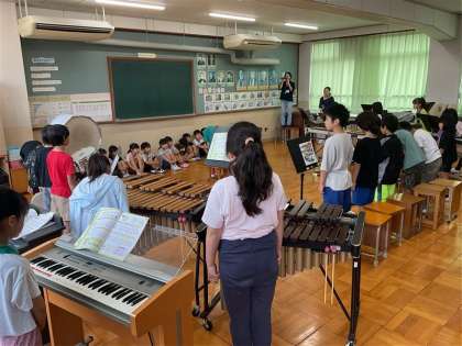 音楽科では「ゆかいなもっきん」という曲を各パートに分かれて合奏の学習を進めていました。1年生に見に来てもらい発表会を開催しました。