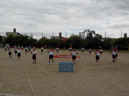1年生の競技の玉入れとダンスの最終練習を行いました。